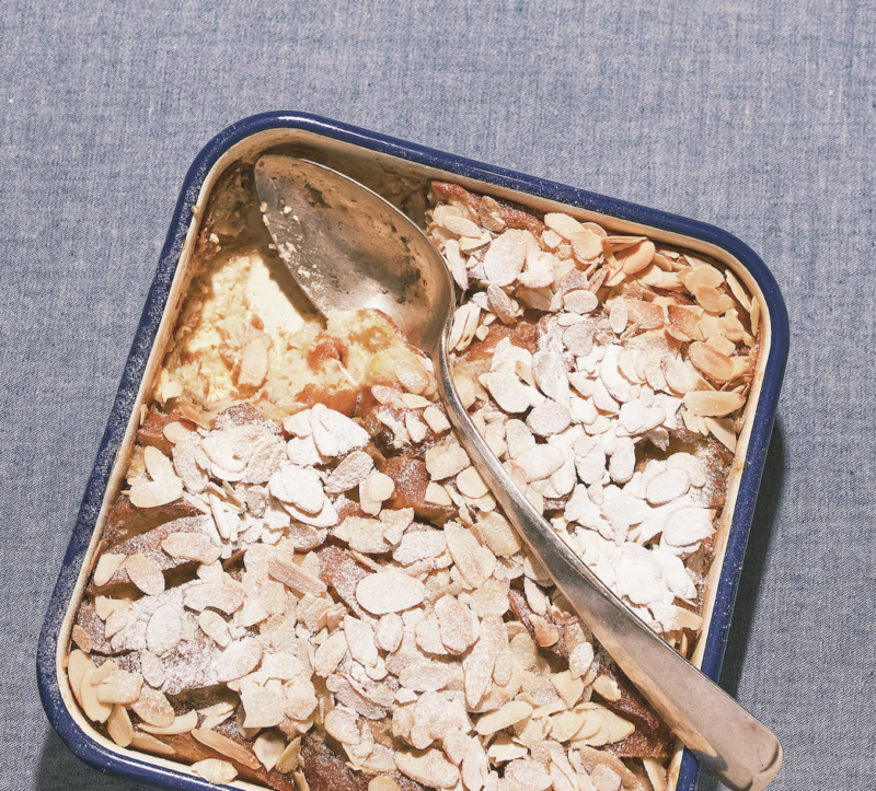 Bread & butter pudding met frambozen en witte chocolade
